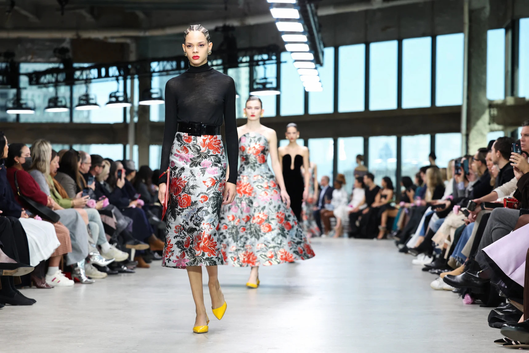 توجد بعض النقوش الكلاسيكية التي تظل رائجة على مر الزمان، قد تغيب في بعض الأحيان لكنها دائمًا ما تعود لتستعيد مكانتها في عالم الموضة. من ضمن هذه النقوش، نقشة الـHoundstooth التي تعتبر إضافة فورية للفخامة والأناقة على أي إطلالة عند استخدامها. لاحظنا هذه النقشة بارزة في تشكيلة سيرجيو هدسون Sergio Hudson، حيث بدت إحدى العارضات مبهرة بمعطف ماكسي يمتد حتى الأرض مطابق مع بليزر بنفس النقشة وبنطال واسع باللون البيج، مكملة إطلالتها بحذاء مدبب من اللون ذاته.