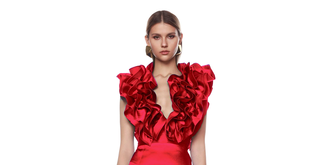 من الموديلات اللافتة هذا الموسم، الفساتين بقصة الجاكيت المستوحاة من البليزر بتصميمه الرسمي الأنيق، مع إضافة بعض اللمسات المميزة التي تجعله يبدو أكثر أنوثة، ليليق بالمناسبات الرسمية والسهرات. مثل هذا الفستان الأحمر القصير بتصميم الجاكيت من توقيع ماركة أليكسيس مابيل، يتميز الفستان بأكمام طويلة وتنورة تتسع من أسفل بثنيات وطيات ناعمة. اكتمل اللوك بالبوت القصير باللون الأسود.